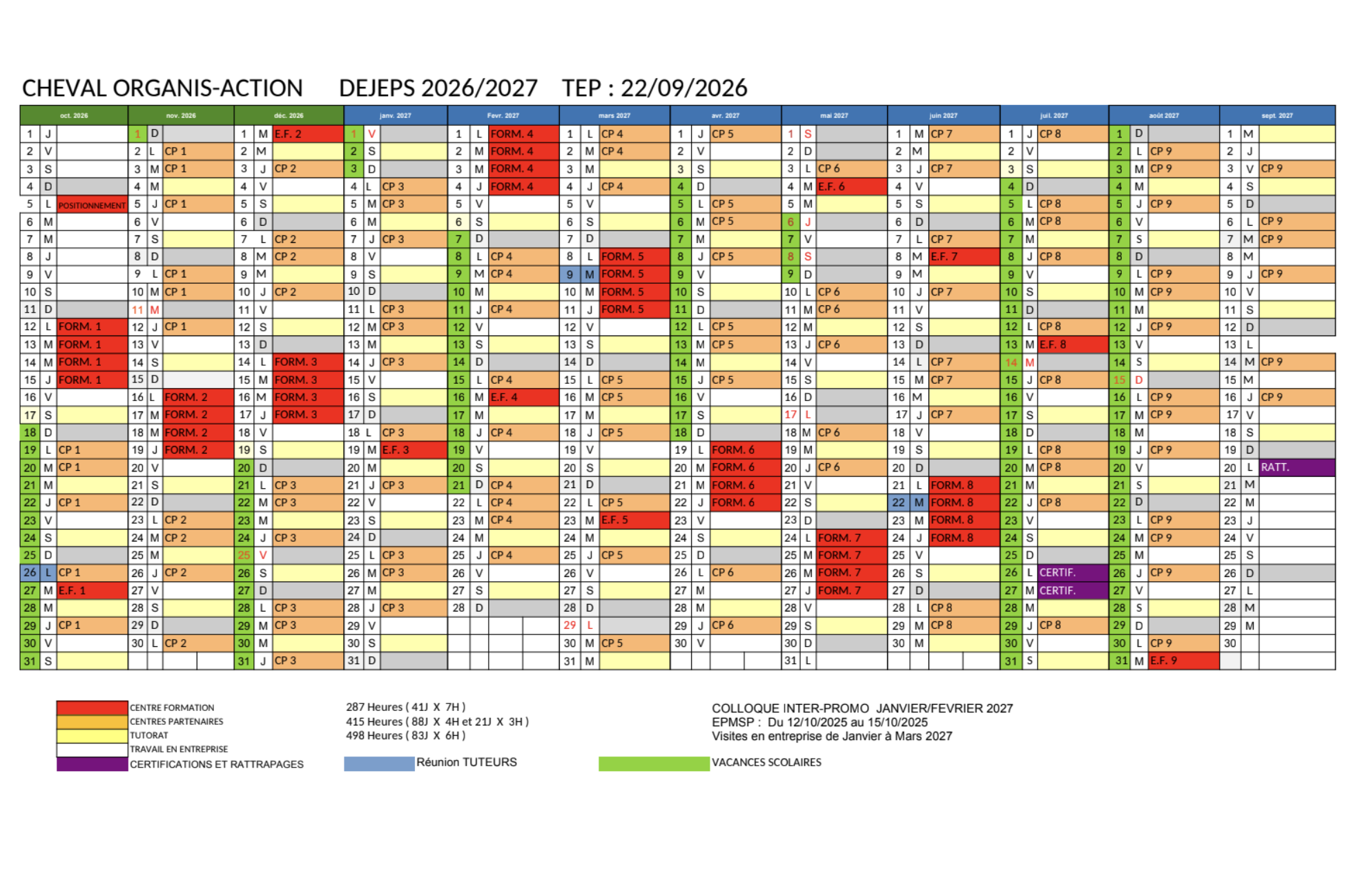 - 8 regroupements de 4 jours et 9 journées évaluatives au centre équestre des Verriès (St Gély du Fesc) soit 294 heures de formation en OF